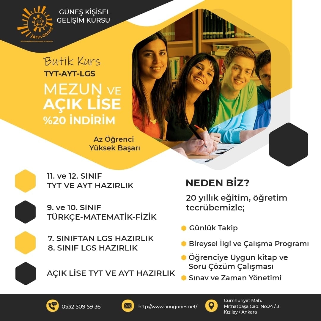 Köylümüz ve Dernek Üyemiz, Seyit Ali ÇAKMAK'ın (Musa) Eğitim Kurumlarından Olan ARİN GÜNEŞ KİŞİSEL EĞİTİM KURUMLARI Köyümüz Öğrenci ve Gençlerinin Eğitimlerine Destek Olmak Adına, Almak İstedikleri Kurslarda %25 İndirim Uygulayacaktır.
